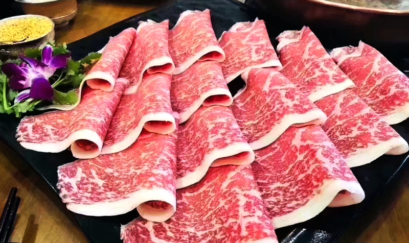 大米龙是后腿一块不规则扁平状的切块,外侧包有筋膜。等级较高的大米龙,比如安格斯M3+/5+、和牛大米龙,通过直接切片可以做出大片的薄肉片,用于火锅,涮涮锅,寿喜烧等。应用场景:涮锅。
