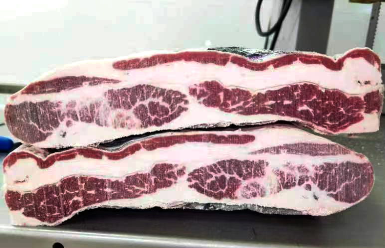 后胸,位于牛的肋骨侧边的正下方,处于整个胸腹部位的中间,肥瘦相间。应用场景:涮锅、烤肉。